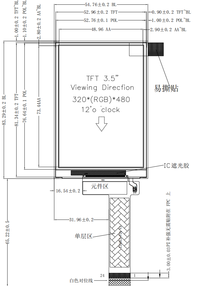 LCD可视区尺寸 LCD Active Area | 48.96*73.44 | mm |
