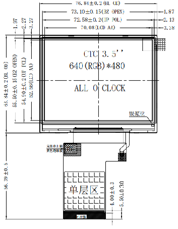 LCD可视区尺寸 LCD Active Area | 70.08*52.56 | mm |